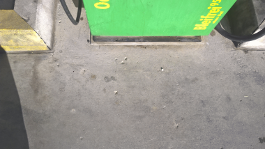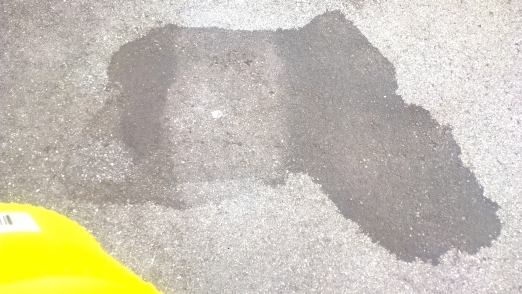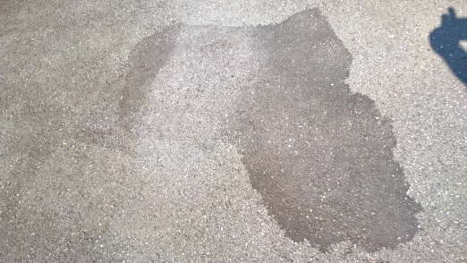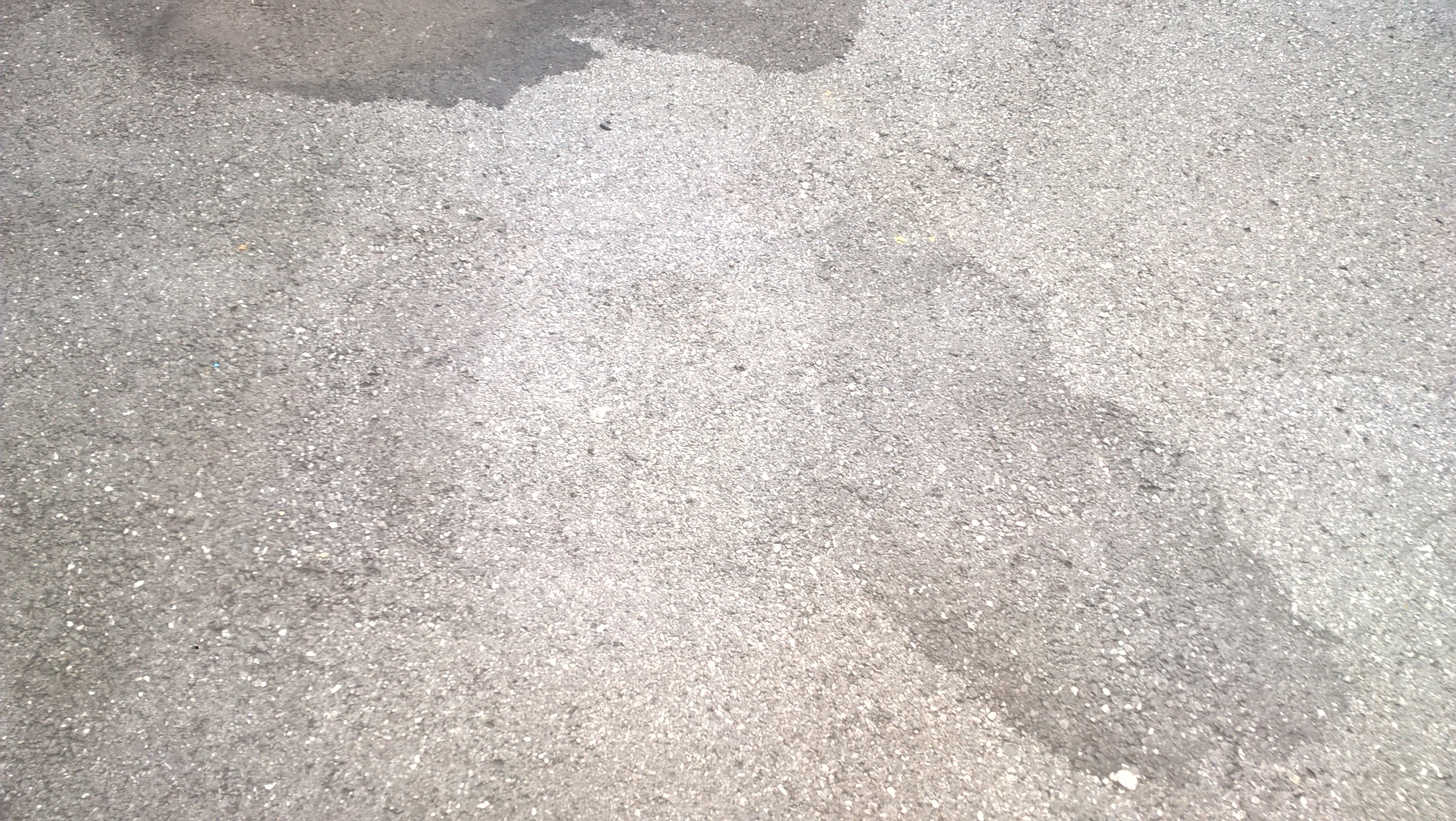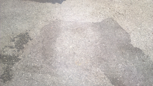 Normalerweise benötigt Asphalt 5-10 Anwendungen. (Beton in der Regel 1-2x) Hier wurde immer sehr wenig einer 50% Mischung VOR dem Regenfall appliziert. Man beachte, dass es sich um den Teststreifen auch aufhellen tut, wegen dem "Auswaschen". Der Fleck weiter oben bleibt eigentlich dunkel.