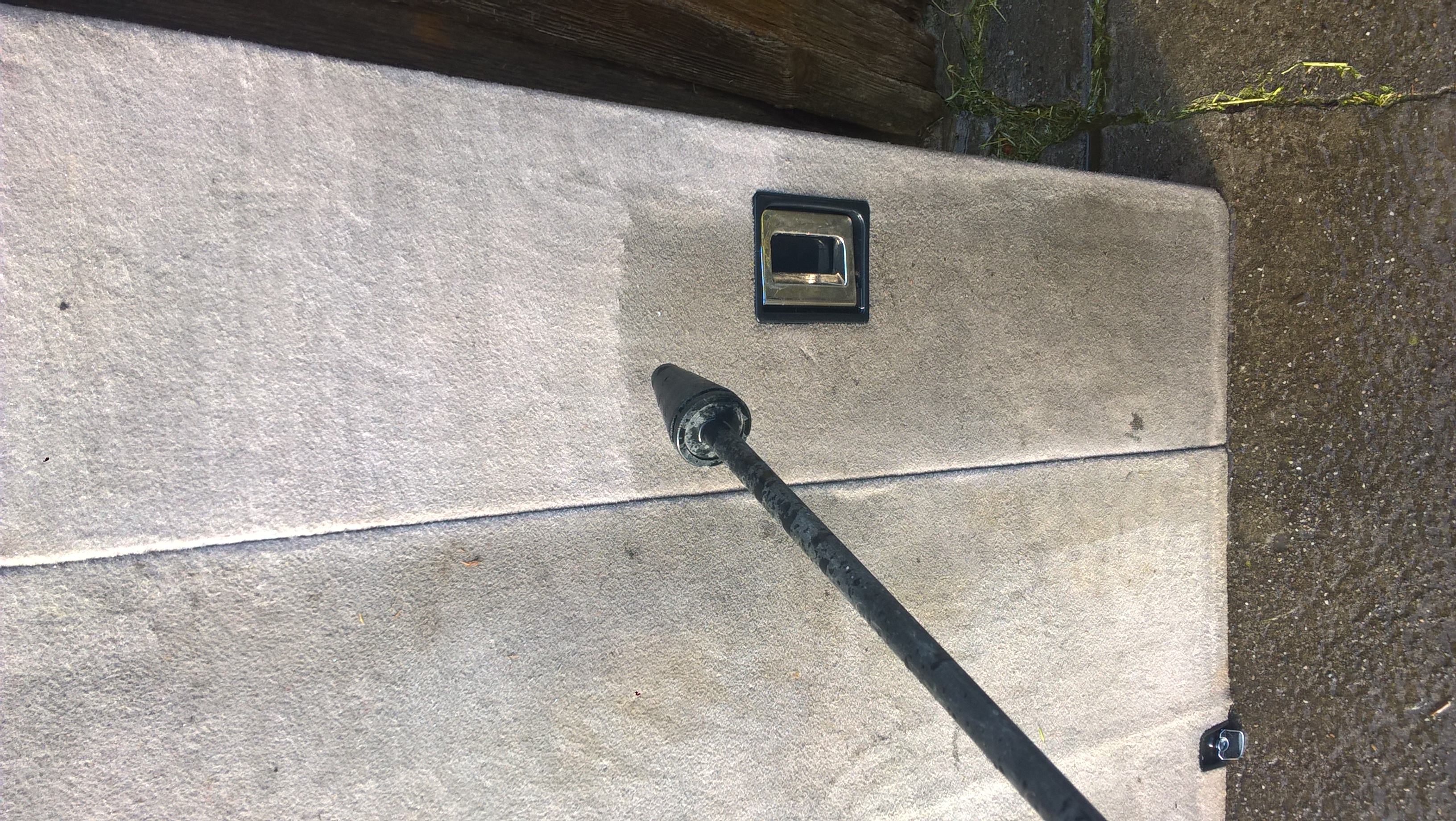 Bodenplatte mit Textil überzogen vom Auto mit einer 10% Mischung gereinigt